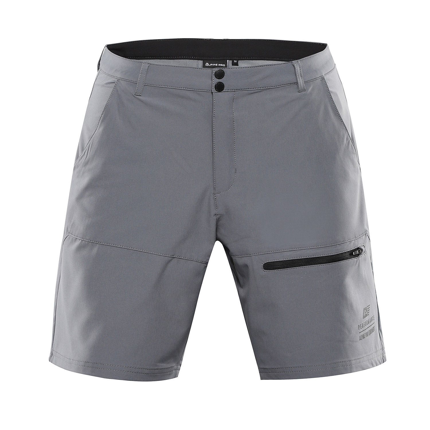 • detail ALPINE PRO šedé pánské rychleschnoucí kraťasy Stretch Cool-Dry