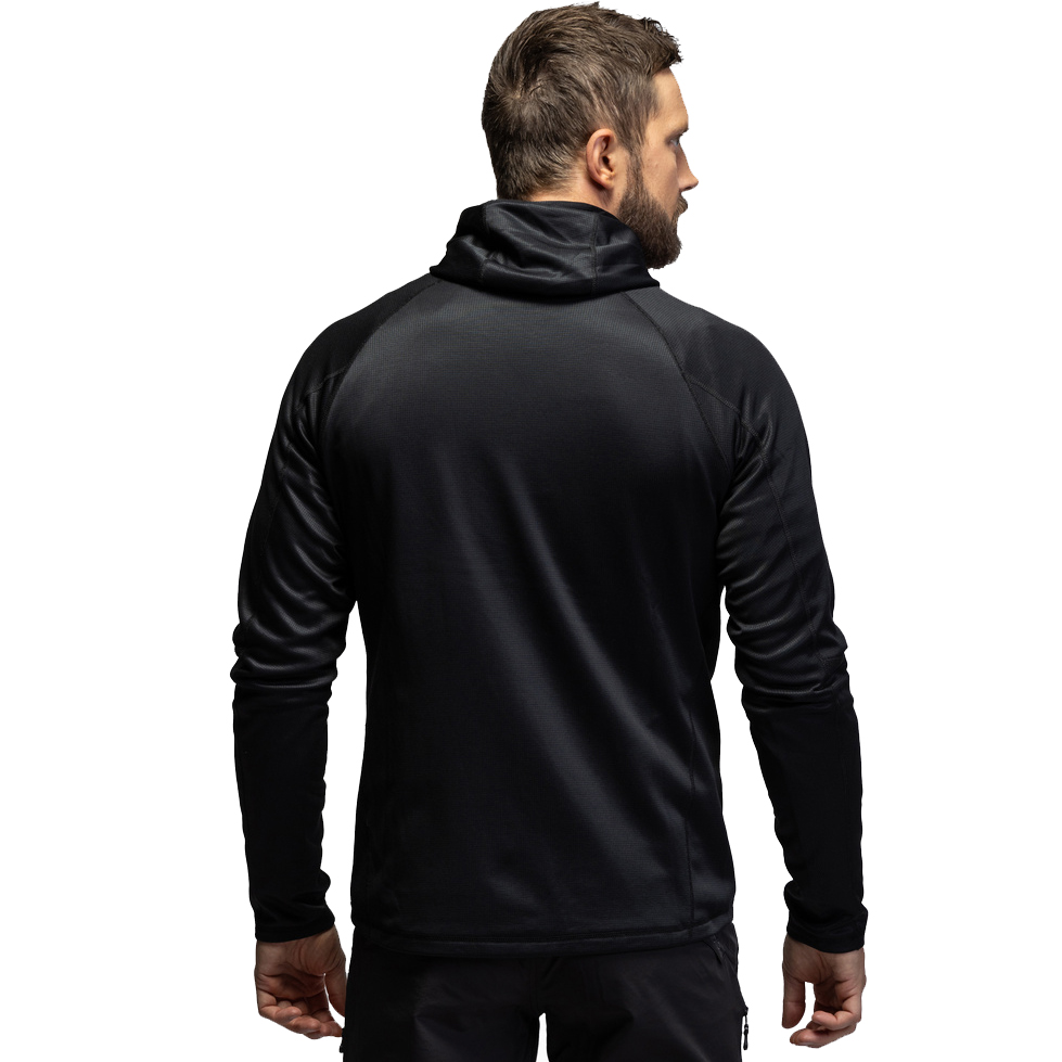 Naše vysoce návyková lehká bunda s kapucí. Perfektní jako střední vrstva, jako bunda nebo jako váš pohodlný svetr k ohni. Dvojité náprsní kapsy se zipem. Delší paže s otvory na palec. Super elastický, přiléhavý střih. Kapuce nastavitelná pomocí šňůrky. Větrací materiál. Hrudní panely odpuzující vodu a zároveň větruvzdorné.