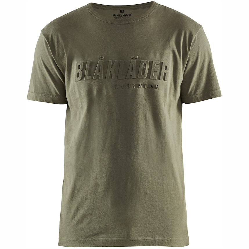 • detail BLAKLADER Sweden 3D Logo zelené pánské profi triko 100% Ba