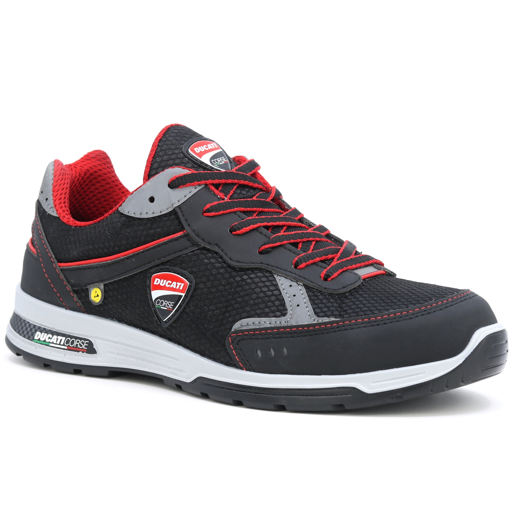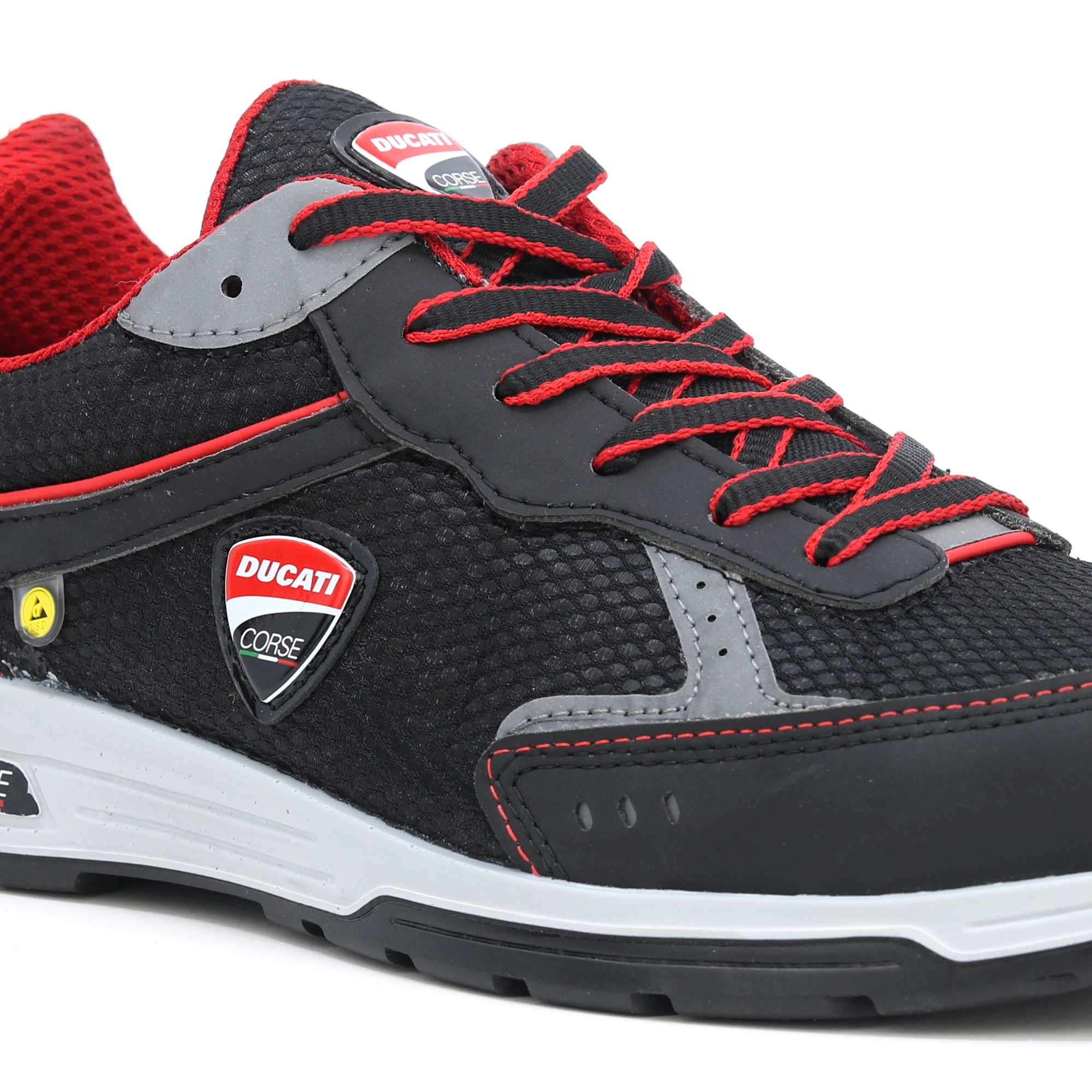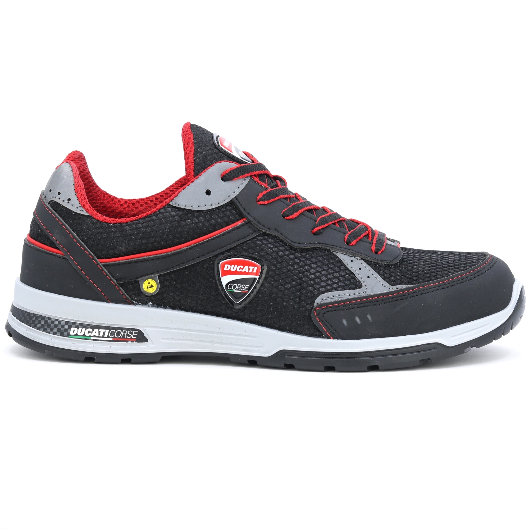 Příběh začal v roce 1926 od vášně pro motocykly, až po závodění. Ducati Mugello = solidnost, dynamika, inovace a bezpečnost. Jen 470 gr. a s měkkou podšívkou na dotek, doprovázejí vás bez obtěžování nohou po celý den. Pro ještě větší pohodlí má stélka Sport Lite houževnatou konzistenci se dvěma úrovněmi hustoty, aby se eliminovaly potíže při chůzi a aby se snížily otřesy při nejtěžších dopadech na zem, zatímco ESD certifikace podešve a stélky zajišťuje eliminaci statické elektřiny nahromaděná v těle. A pokud jde o bezpečnost: Antiperforační fólie v ultra odolné HRP tkanině, špička vyrobená z kompozitního materiálu s elastickým chováním během nárazu, aby se zabránilo amputaci vašich prstů, na rozdíl od oceli. Nevodivá podešev (ESD), protiskluzová (SRC) na povrchech namazaných olejem, podlahy omyté čisticími prostředky a vložkou SHOCK ABSORBER. EN ISO 20345 - BEZPEČNOSTNÍ OBUV