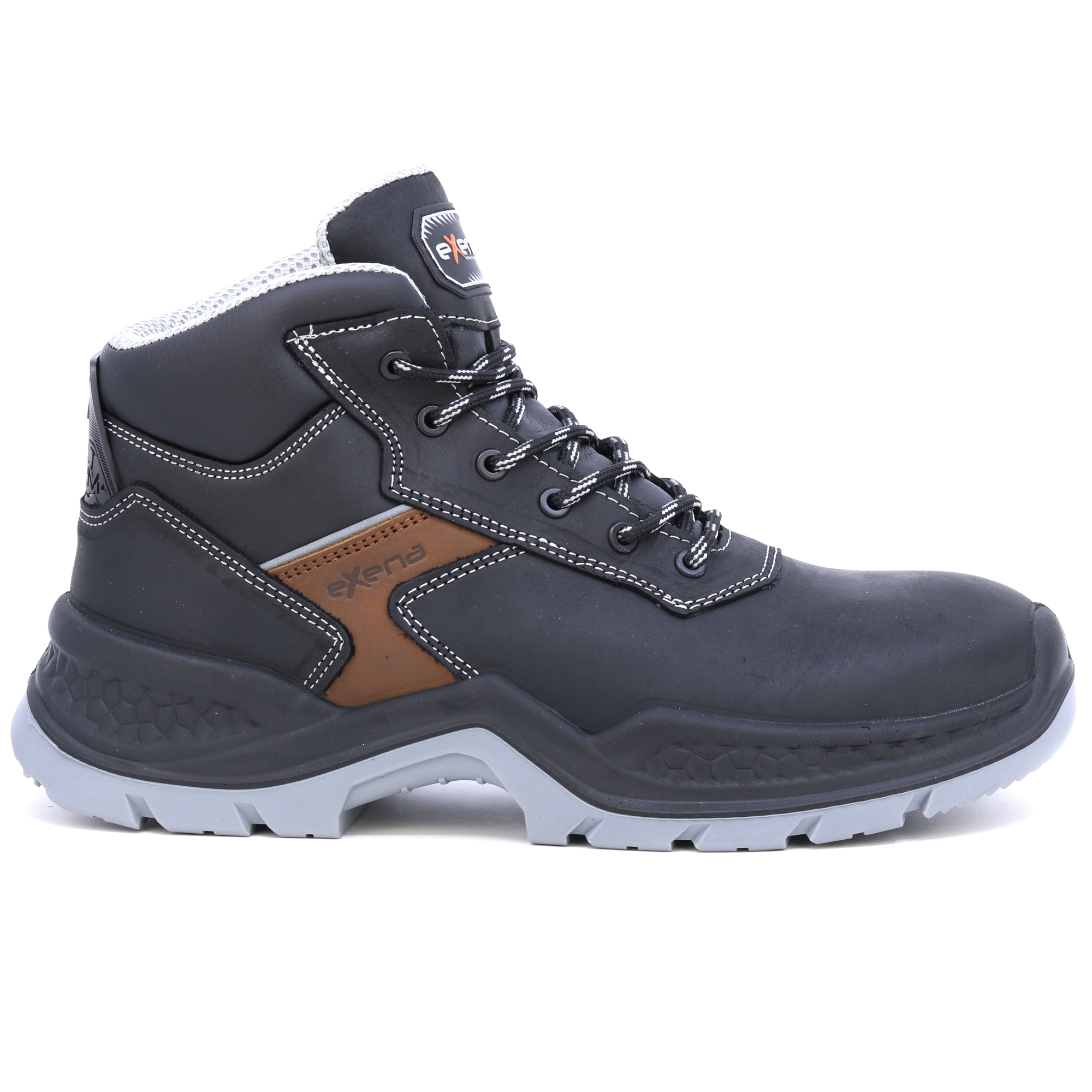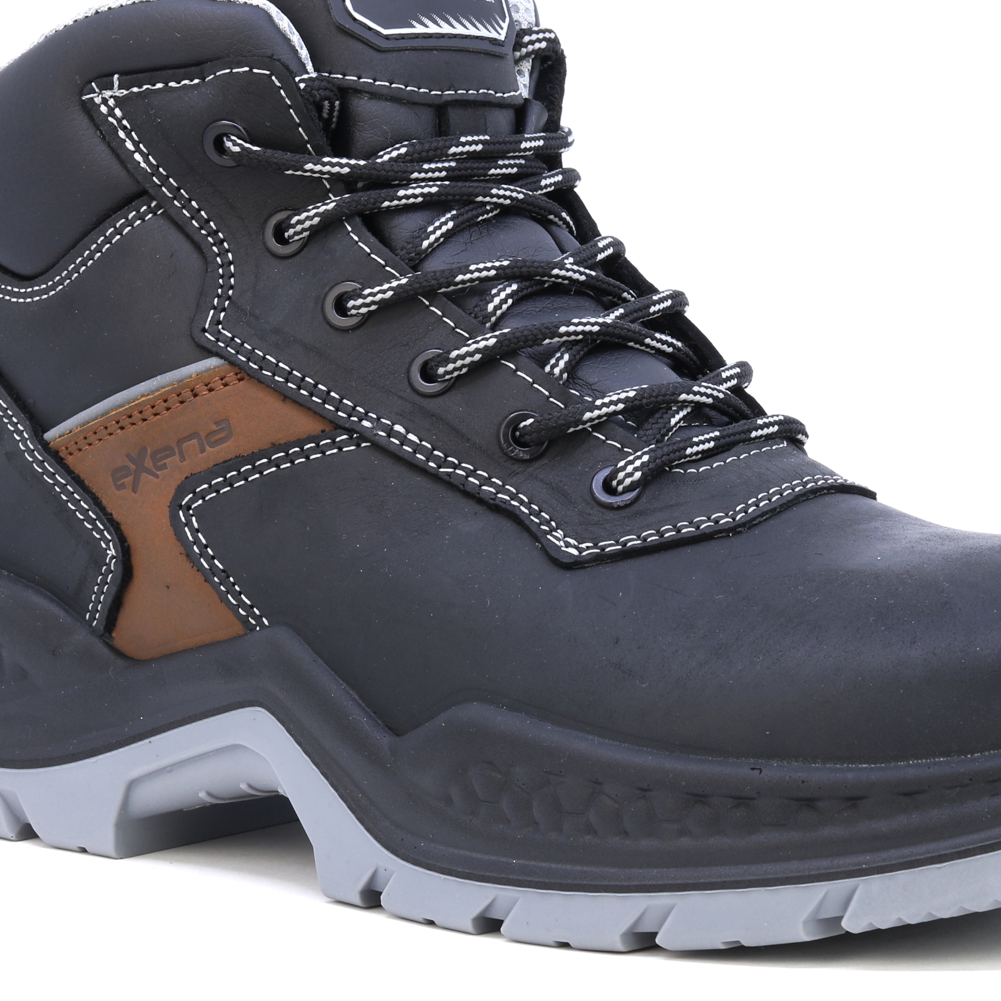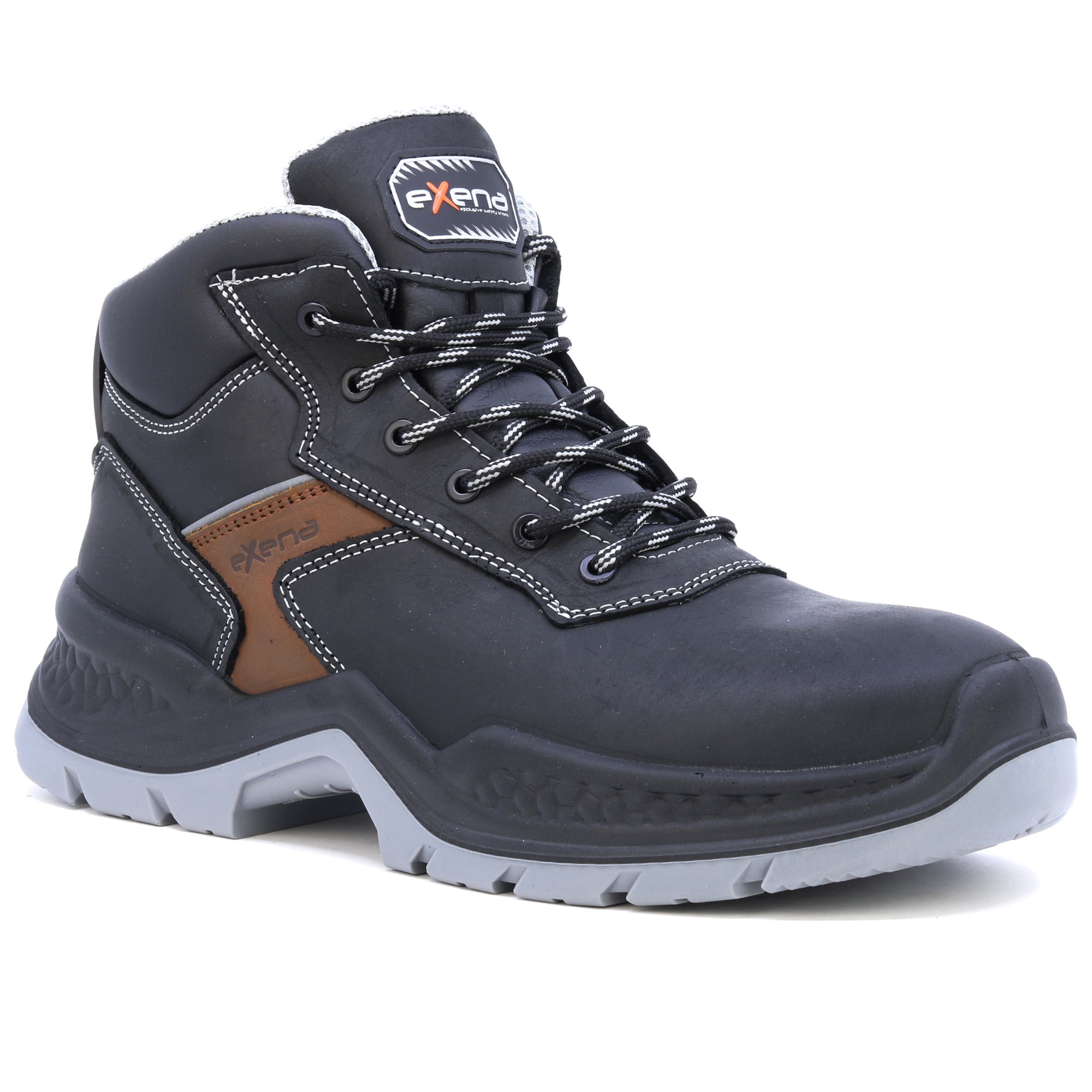 Kožené pracovní boty italské značky Exena se stupněm ochrany S3 jsou navrženy tak, aby vyhověly nejpřísnějším požadavkům kladeným na pracovní obuv. Špička obuvi obsahuje kompozitovou tužinku s kevlarovou stélkou pro účinnou ochranu proti mechanickému nárazu. Výhodou kompozitové tužinky je vlastnost, která zabraňuje přehřívání v letních měsících a zároveň vede k udržení tepelného komfortu při chladných dnech. Svršek boty je vyroben z kvalitní lícové usně. Vnitřek obuvi je opatřen prodyšnou textilií, která umožňuje noze volně dýchat při vysoké pracovní zátěži. Podrážka je vyrobena z antistatického a olejivzdorného materiálu. Pracovní obuv Exena udělá radost zákazníkům hledajícím u obuvi zejména kvalitu a pohodlí.