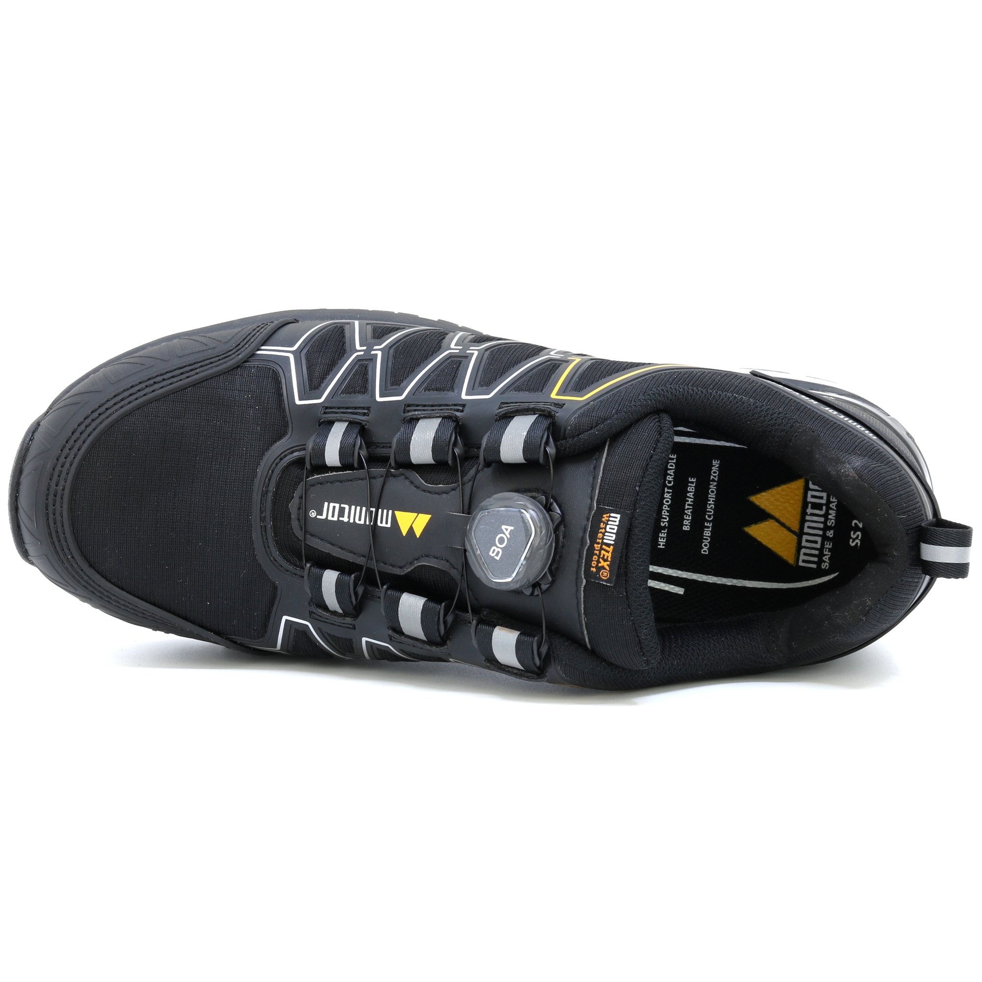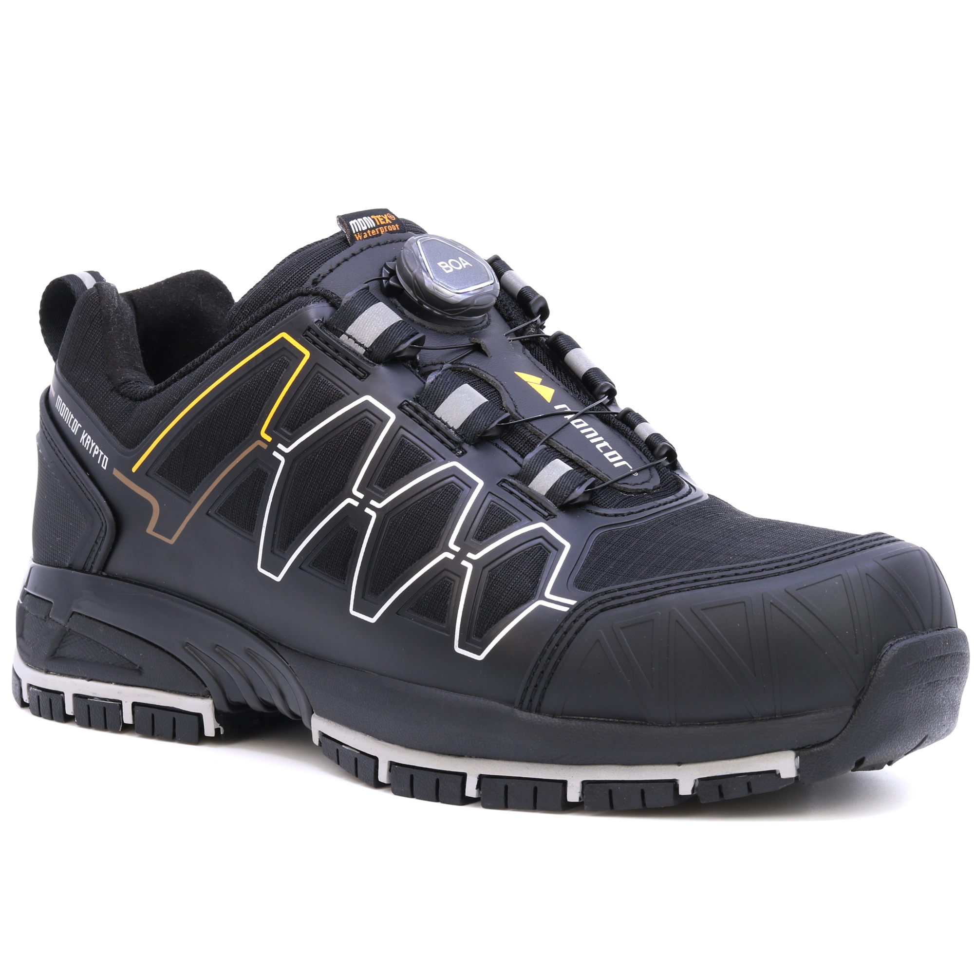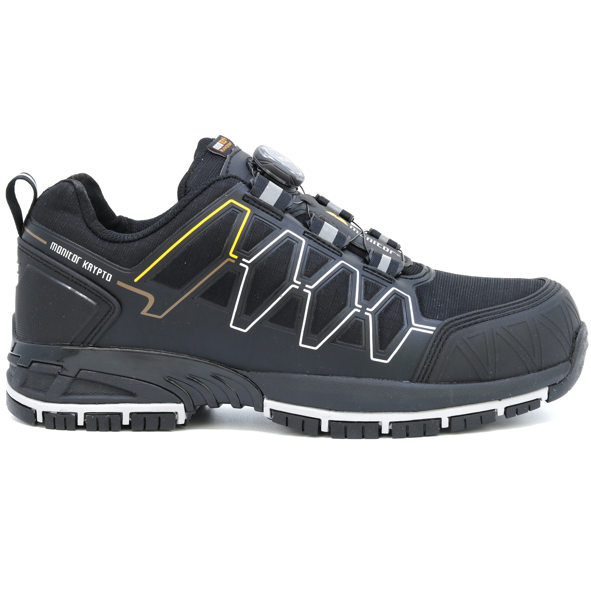 Monitor Krypto je sportovní bezpečnostní obuv, která nejenže vypadá jako sportovní obuv, ale je také pohodlná. Horní část využívá systém BOA® Fit pro rychlé a snadné nazouvání. Svršek je vybaven nepromokavou membránou Monitex, stejně jako odolným materiálem Ripstop, spolu se silnější ochranou TPU na špičce a patě pro další pevnost.