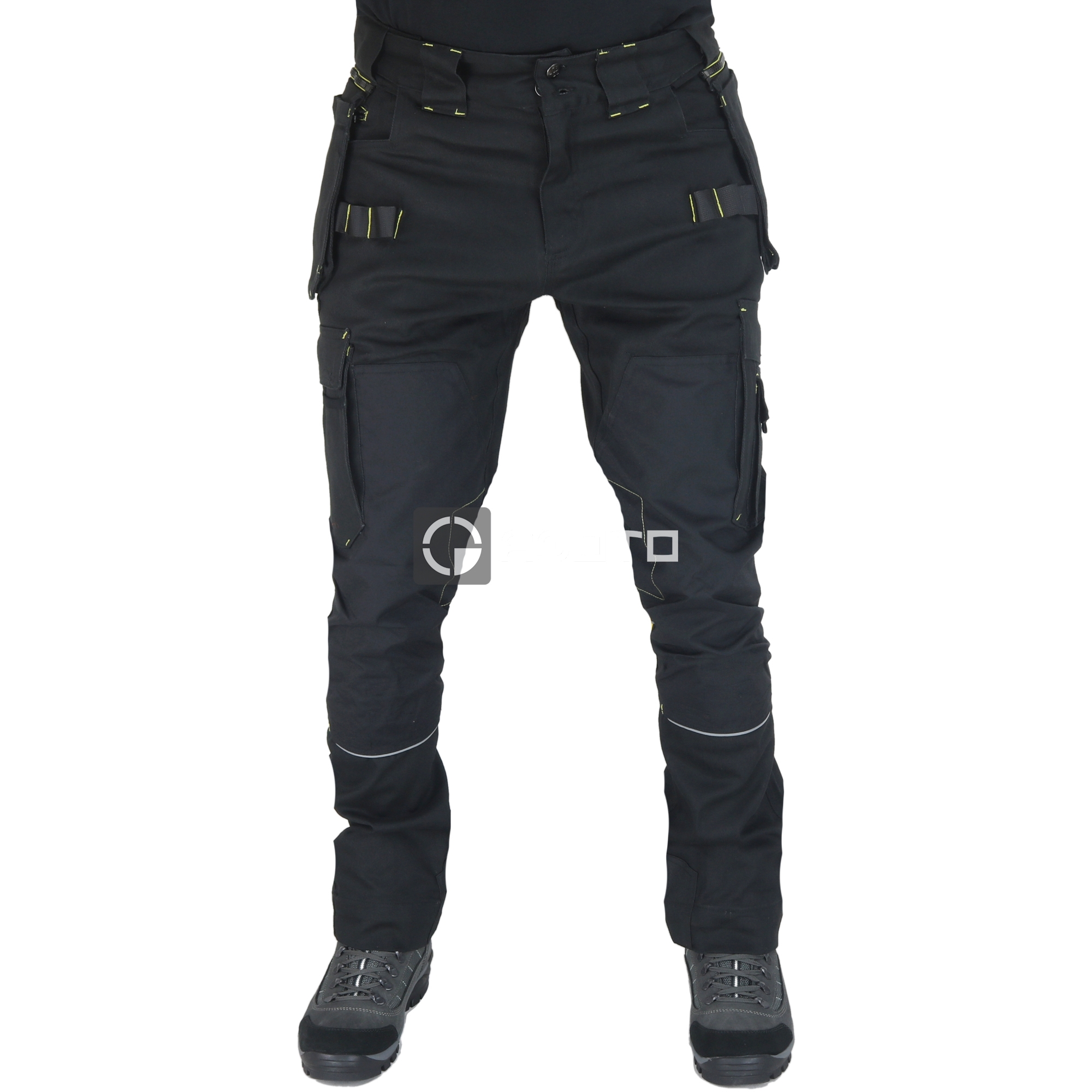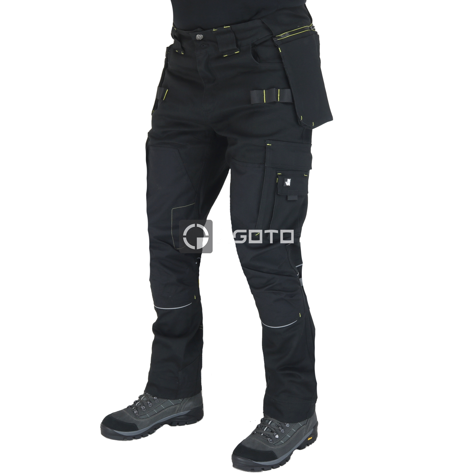 Pánské pracovní kalhoty NINE WORTHS Howard Stretch v černé barvě jsou navrženy pro maximální komfort a odolnost při náročné práci. Hlavní materiál tvoří 98 % bavlna a 2 % elastan (300 g/m2) v provedení kepr, který zajišťuje flexibilitu a pohodlí při pohybu. Kalhoty jsou zesíleny na namáhaných místech polyesterem 600D Oxford s PU vrstvou (250 g/m2), a kolenní chrániče jsou vyrobeny z odolného materiálu CORDURA® 500D (100 % polyamid s PU vrstvou, 245 g/m2). Splňují certifikaci EN 14404 + A1 level 1, což potvrzuje jejich ochranu. Mají nastavitelný pásek MOOV' a 12 kapes včetně kapes na nářadí, smartphone a skládací metr. Kalhoty také nabízejí poutka na nářadí, trojité švy pro vyšší odolnost a nastavitelný lem.
