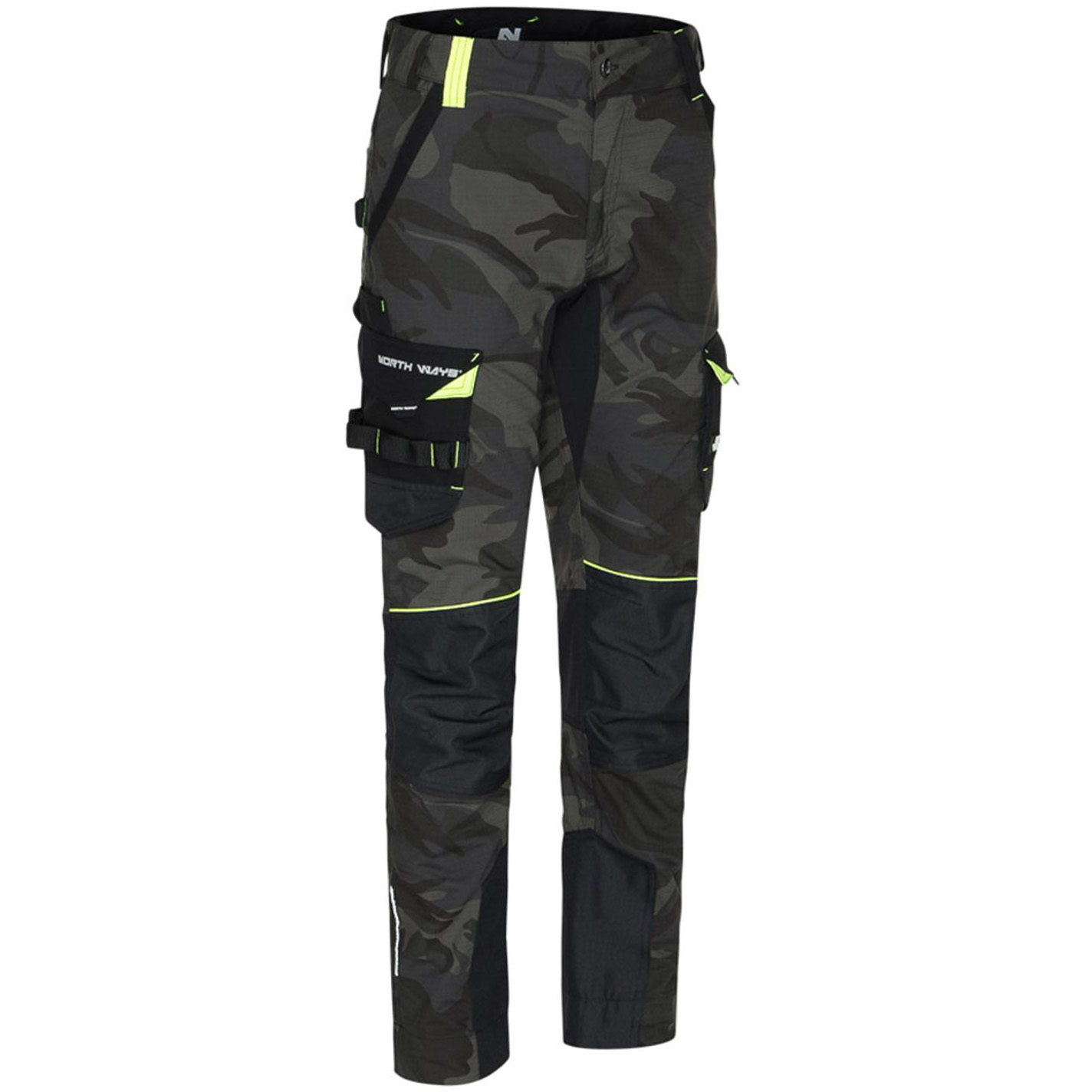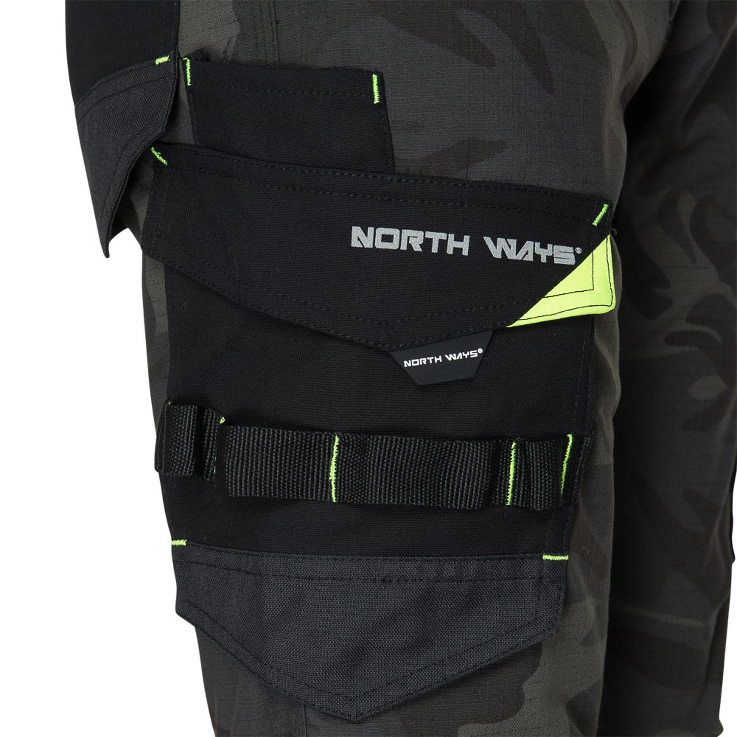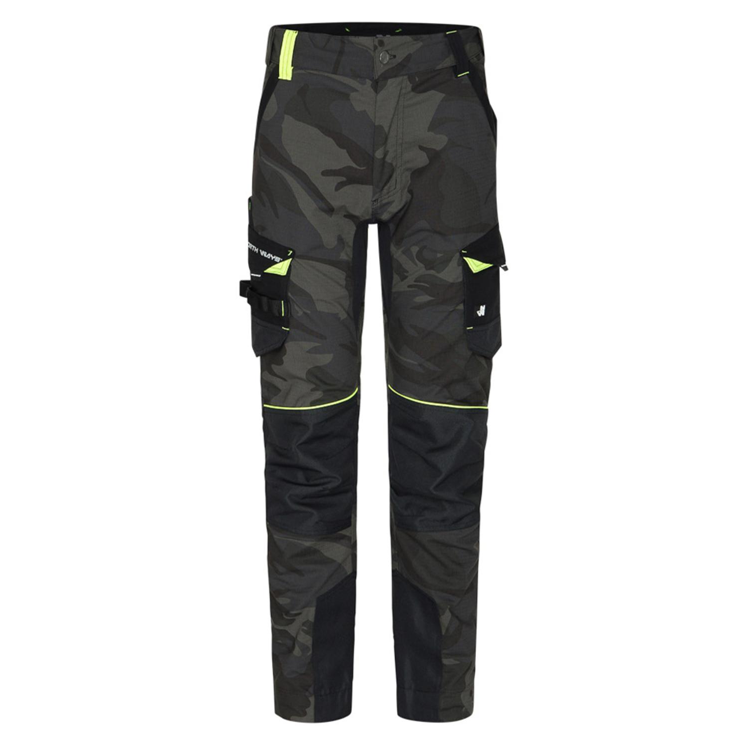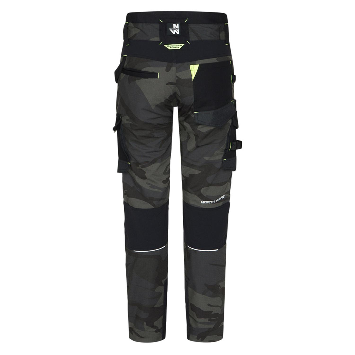 Prémiové Stretch pracovní kalhoty Mirage woodland - North Ways. Tyto pracovní kalhoty mají předtvarované výztuhy kolen a strečové vložky z elastanu. Mají nastavitelný pas MOOV', zvýšená záda, nastavitelné lemy a retroreflexní detaily a dále mnoho praktických kapes. FUNKCE: 260 g/m2 65 % polyester, 33 % bavlna, 2 % elastan ripstop. Předtvarované 600D Oxford kolenní výztuhy se 100% polyesterovým PU zátěrem, 250 g/m2