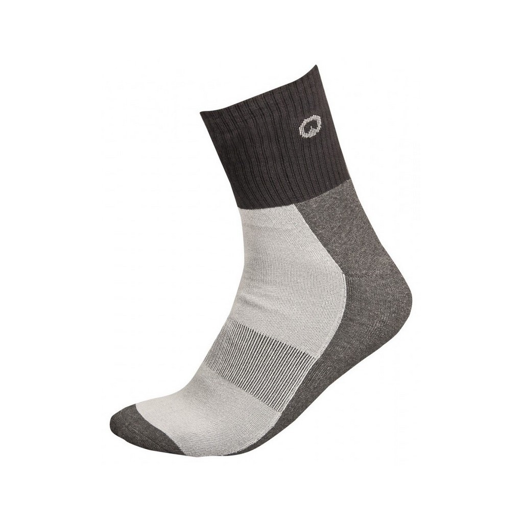 šedé sportovní ponožky, spodní strana chodidla se zesílením, funkční zóna v oblasti nártu pro lepší stabilizaci, široký a elastický lem zabraňuje sklouzávání, materiál: 75 % bavlna, 23 % PES, 2 % elastan.