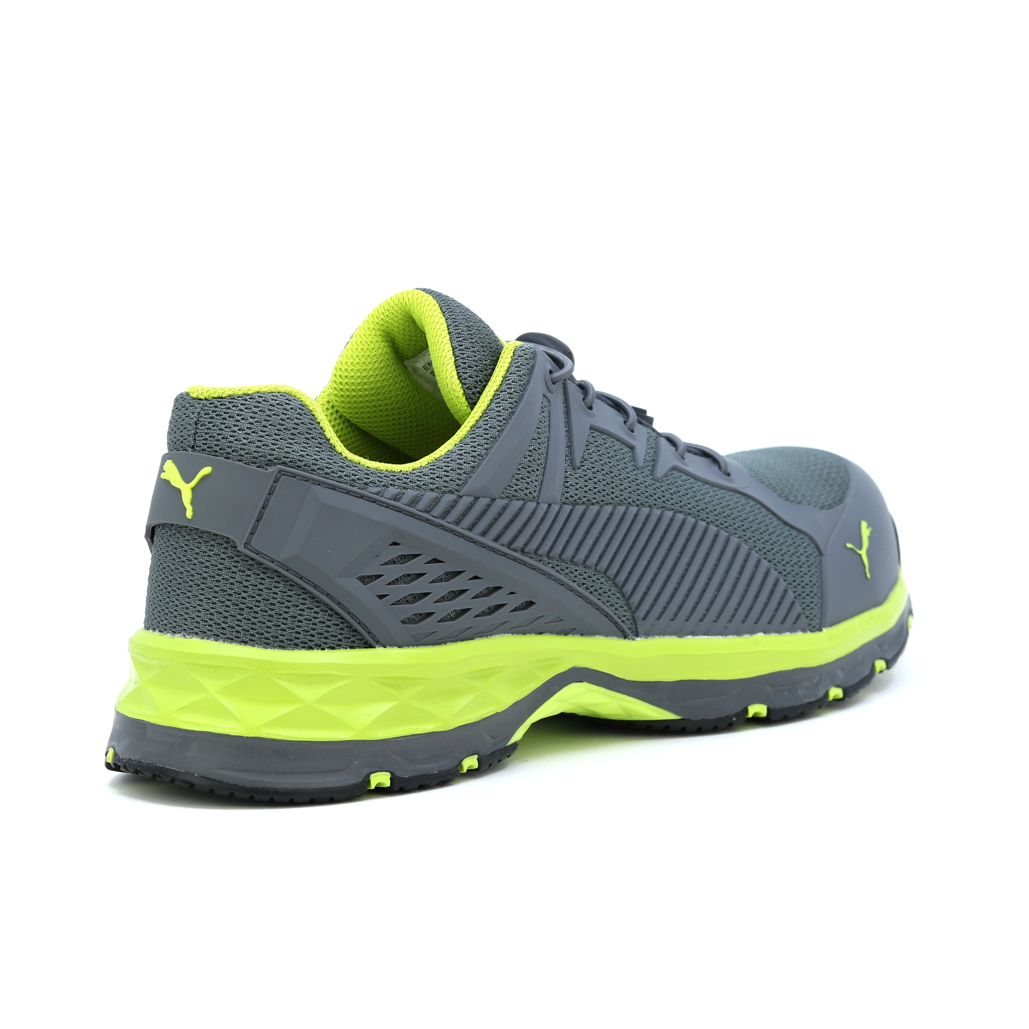 • detail PUMA Fuse Motion 2.0 green low S1P ESD HRO šedá pánská pracovní obuv
