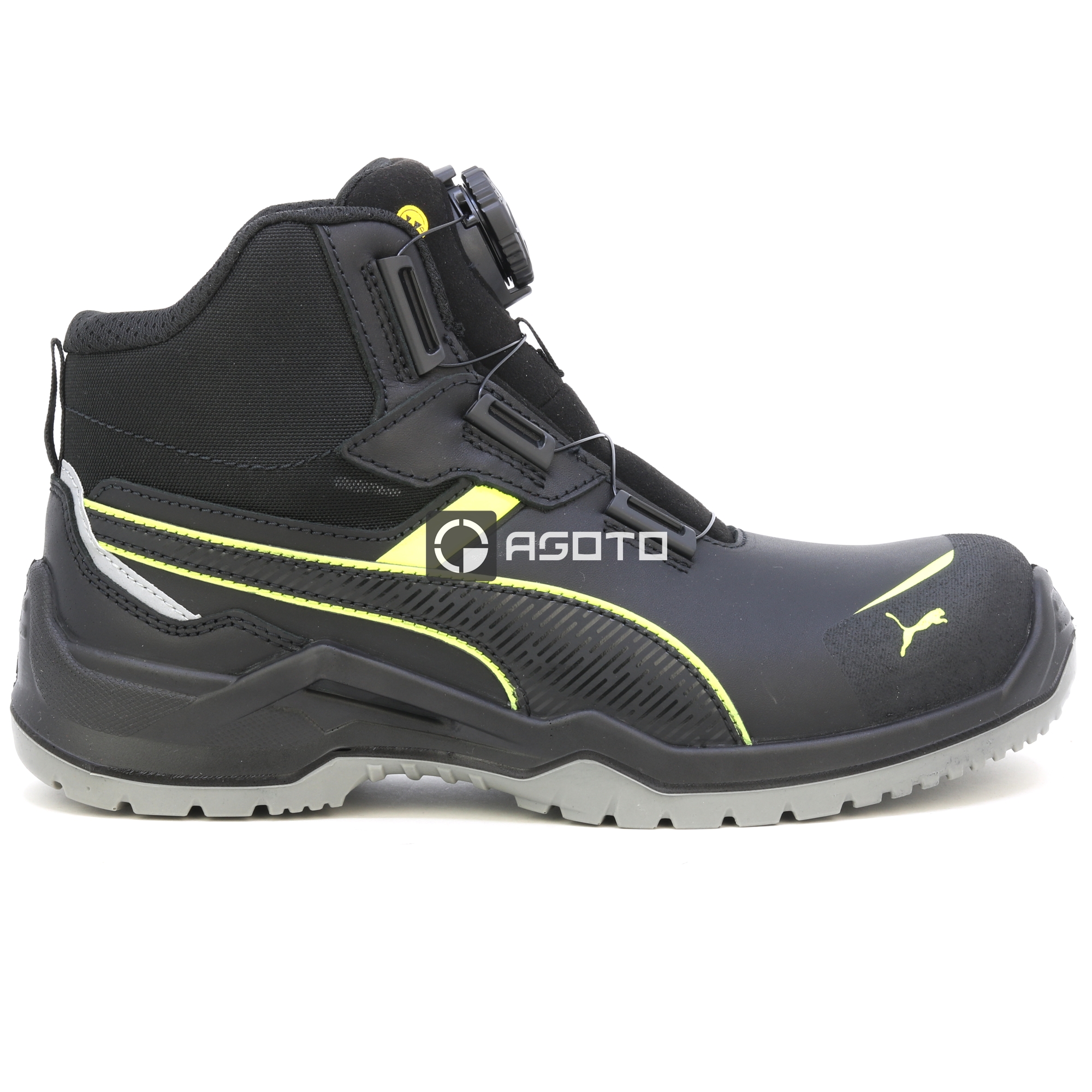PUMA Krypton DISC MID S3 ESD černá pánská kožená pracovní obuv rychlozavazování