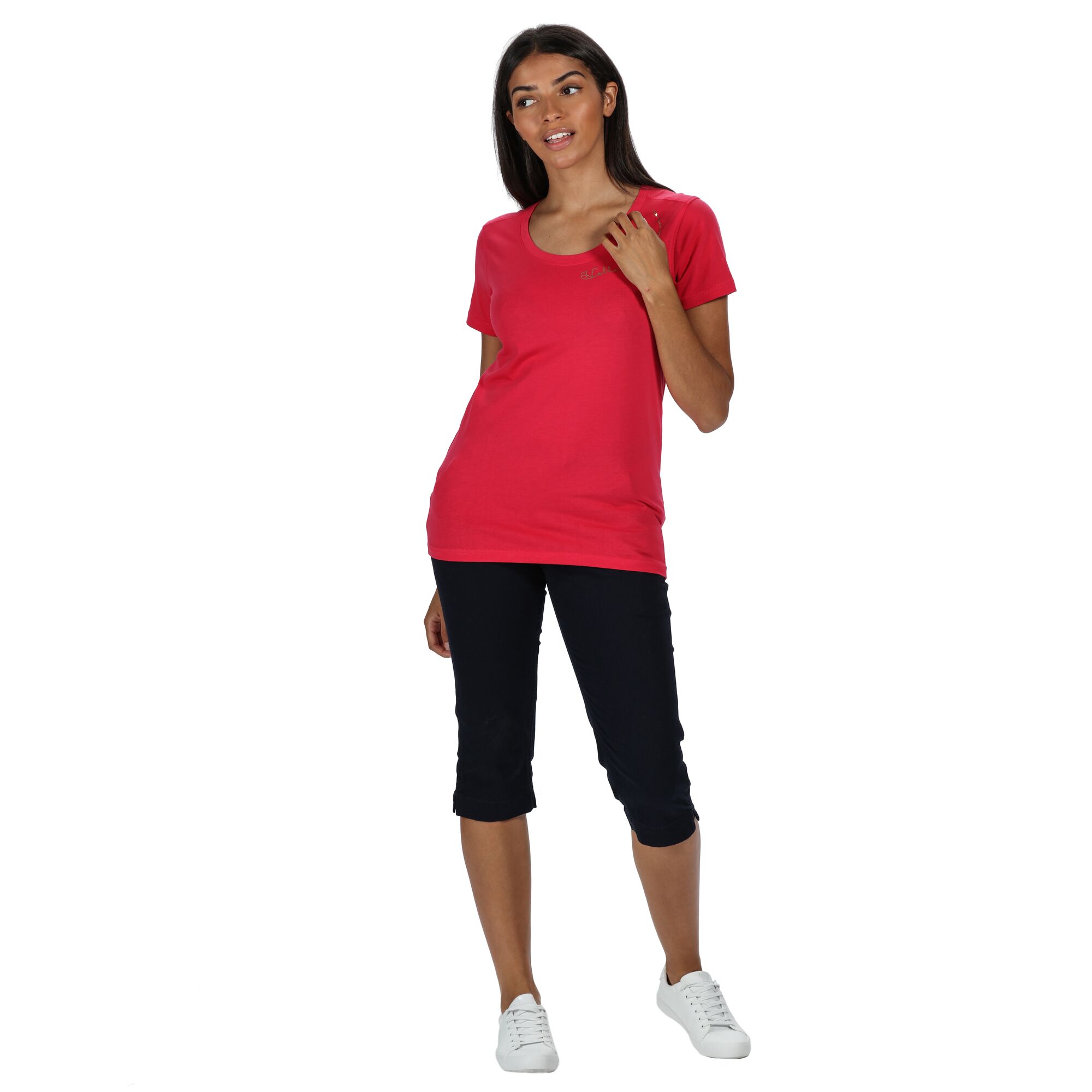 Dámské tričko s krátkým rukávem Regatta Filandra IV. Technologie Coolweave s chladícím účinkem. Bavlněná vlákna mají zcela přirozený chladicí účinek přímo na kůži. Potisk na přední straně. Materiál: 100% bavlna.