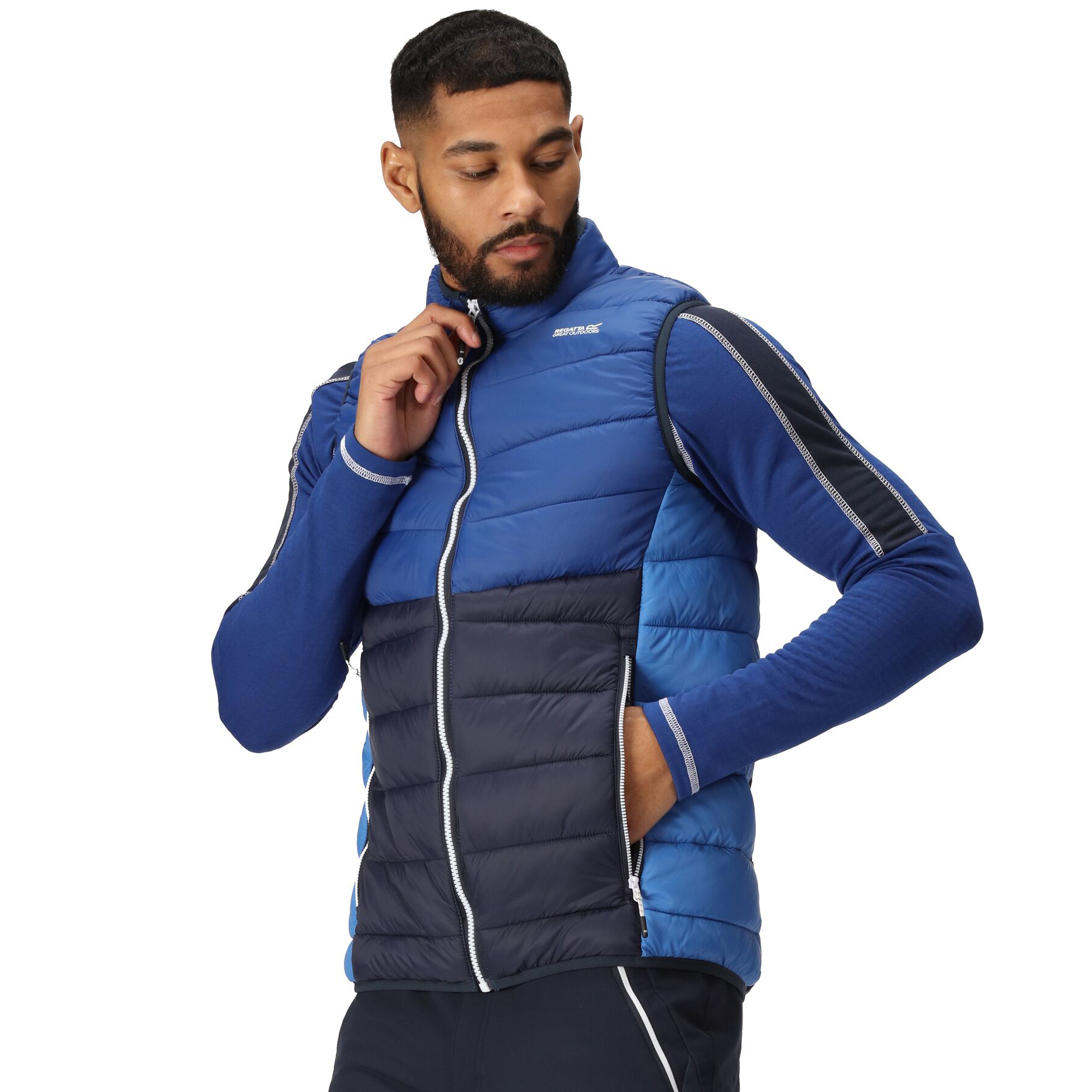 • detail REGATTA Harrock B/W II modrá pánská zateplená vesta