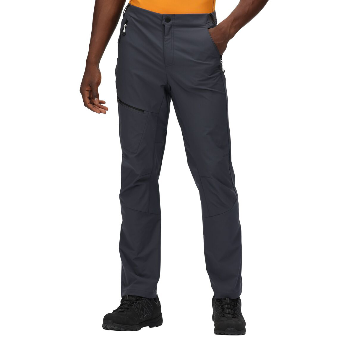 Pánské turistické kalhoty Highton Pro Trs značky Regatta jsou pružné, odolné vůči vodě, ale i vůči opotřebení. Kalhoty jsou vyrobené z pohodlné strečové polyesterové tkaniny Isoflex pro neomezený pohyb a dlouhodobé nošení. Odolná vodoodpudivá úprava na vycházkových kalhotách zabrání lehkým přeháňkám. Otvor na zip u kotníku umožňuje snadné oblékání/vyzouvání. Nezbytností jsou i 2 praktické kapsy na zip.