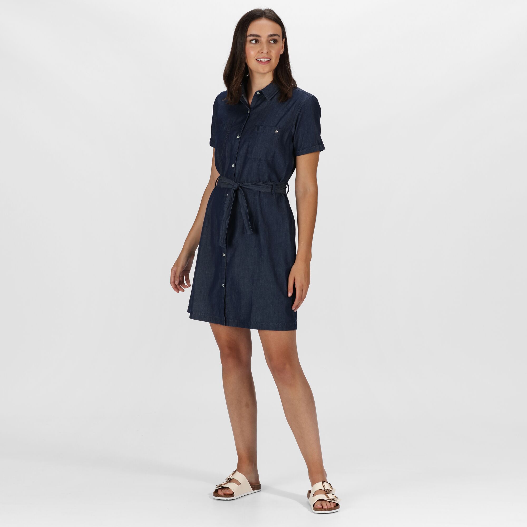 Klasický tvar, mimořádně měkká organická bavlna a úhledný střih dělají z těchto funkčních košilových šatů nezbytnost ve vašem šatníku. Díky barevně sladěnému textilnímu pásku, rozparku vzadu a "perleťovým" knoflíkem tvoří pohodlné a stylové oblečení pro denní prohlídky města nebo večeři na pláži.