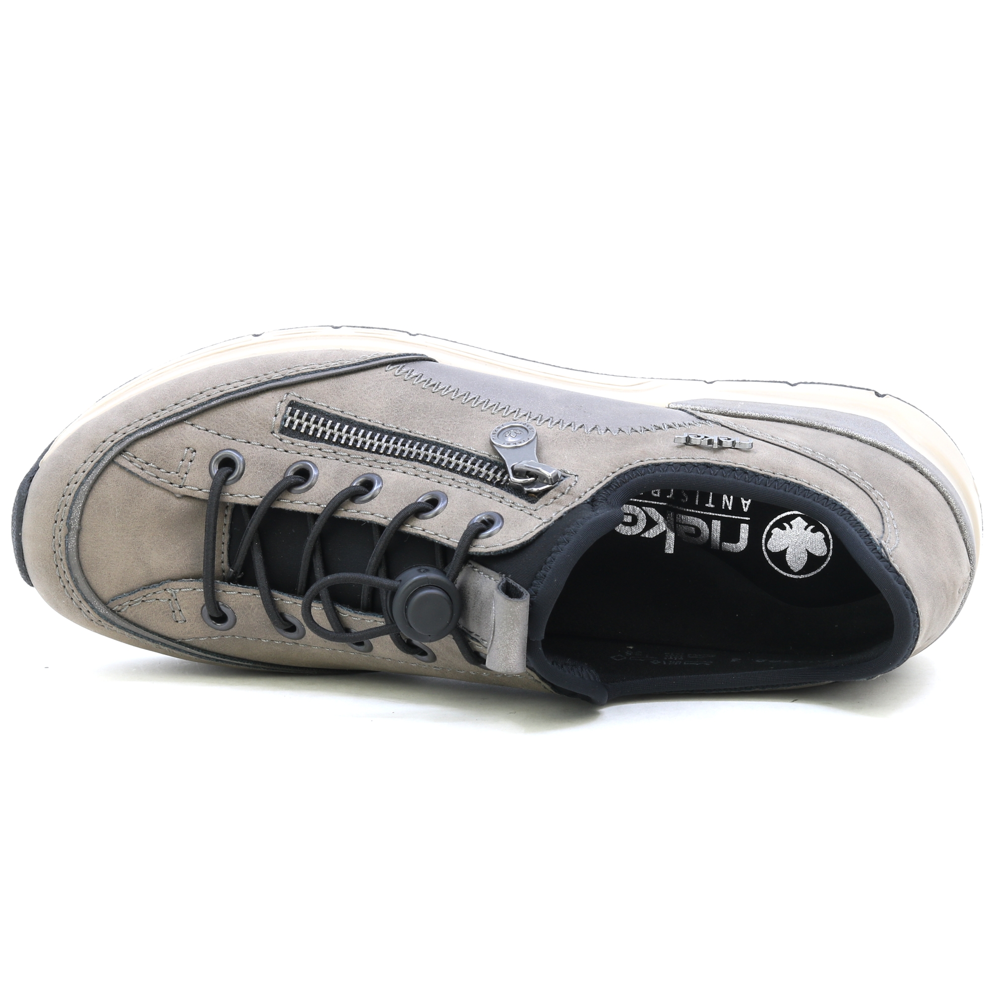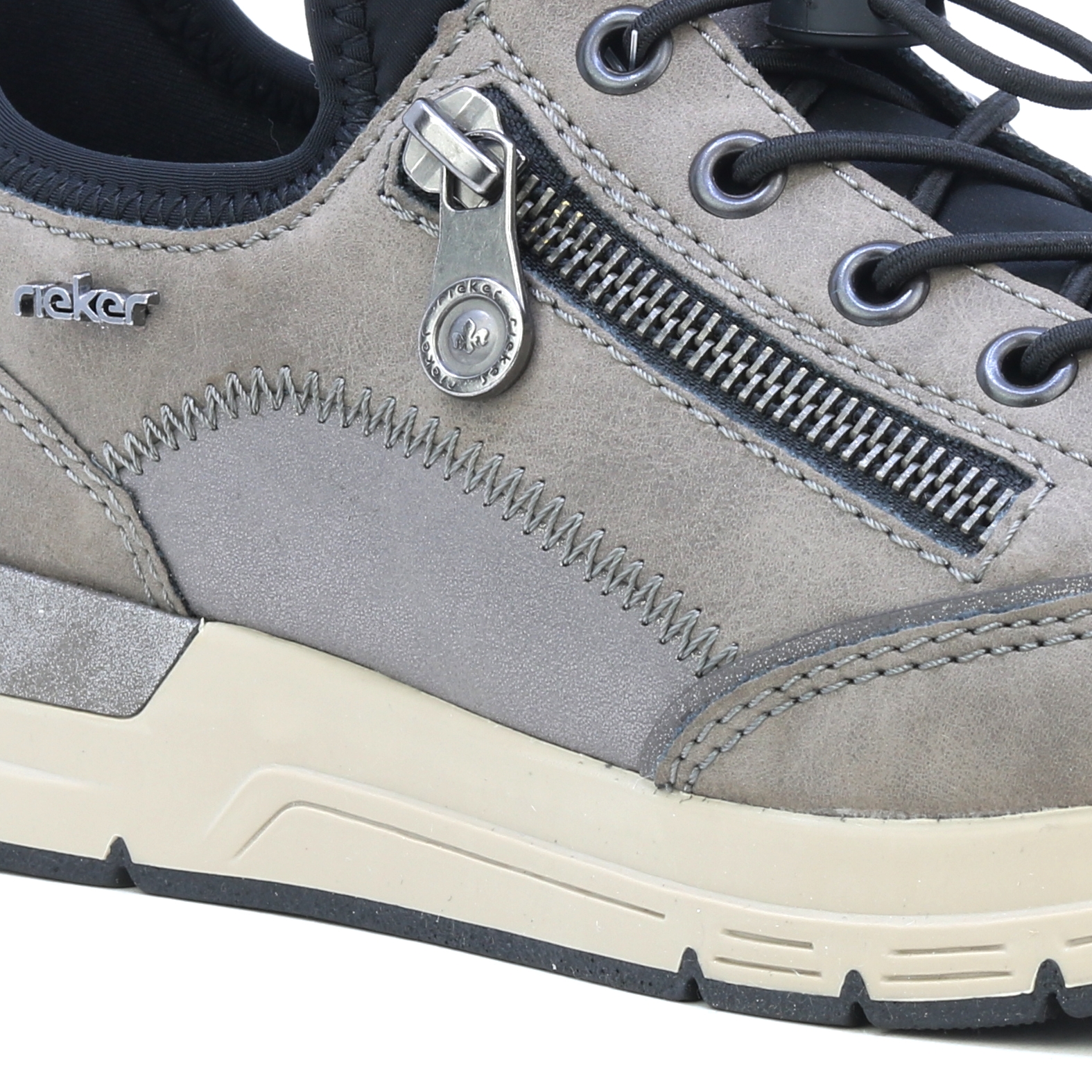 • detail RIEKER 58958-42 šedé dámské tenisky
