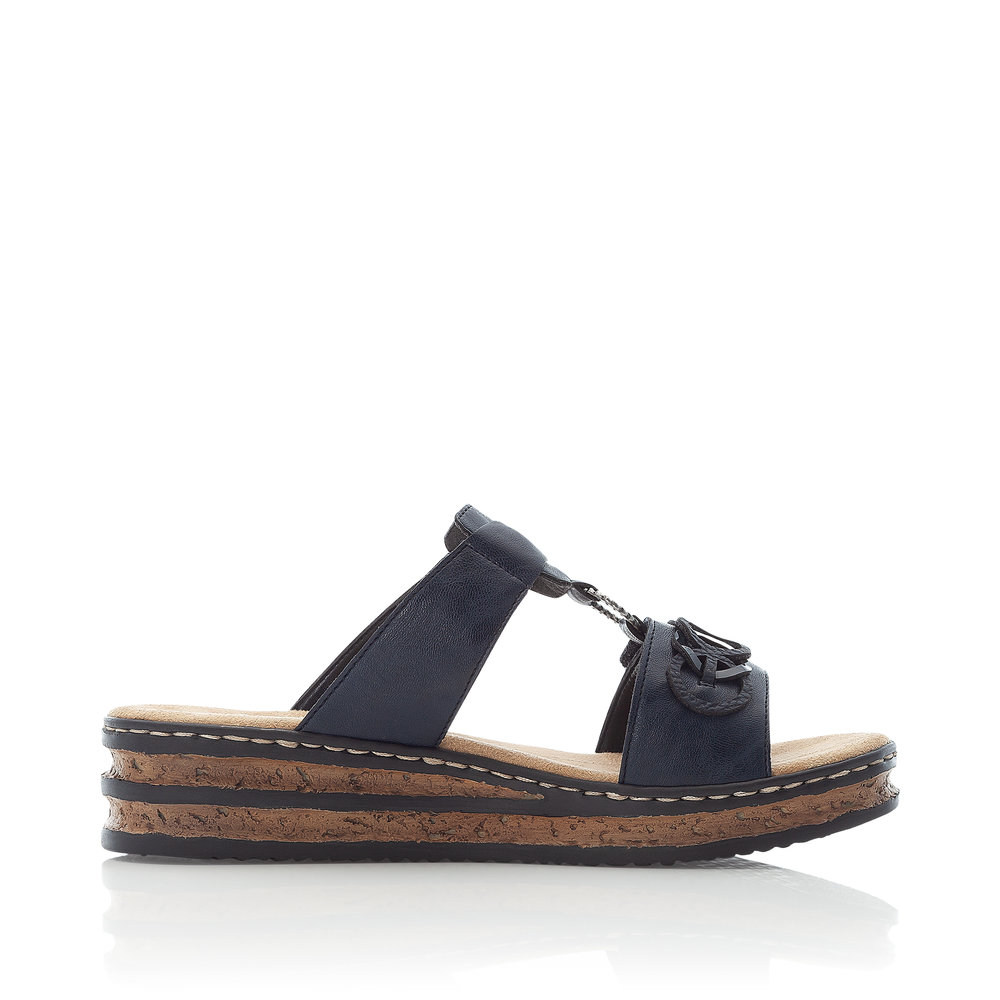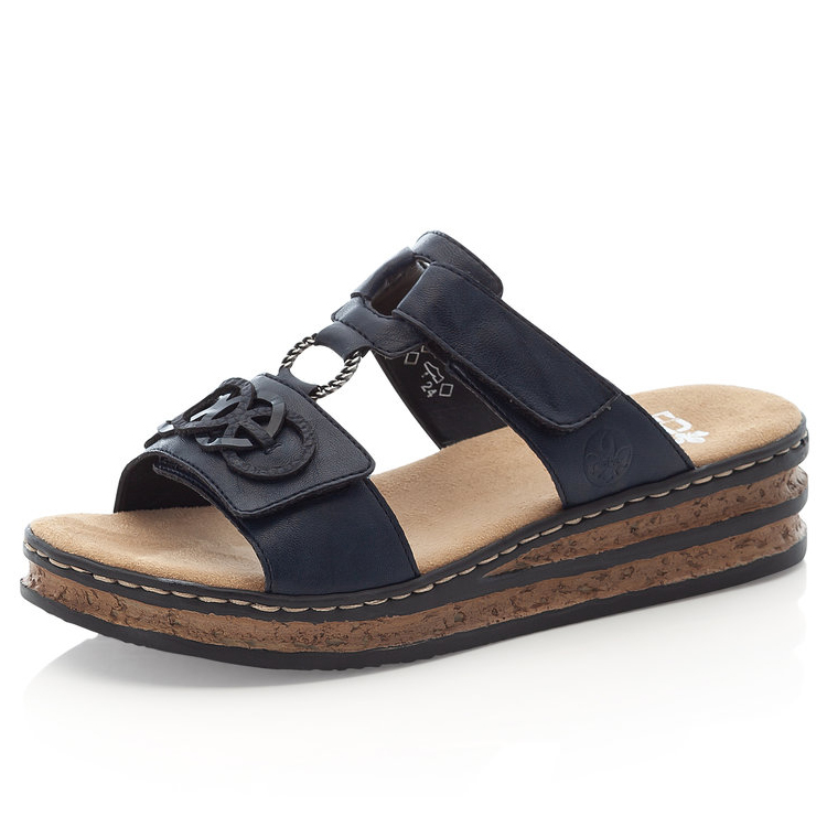 • detail RIEKER 62936-14 modré dámské pantofle