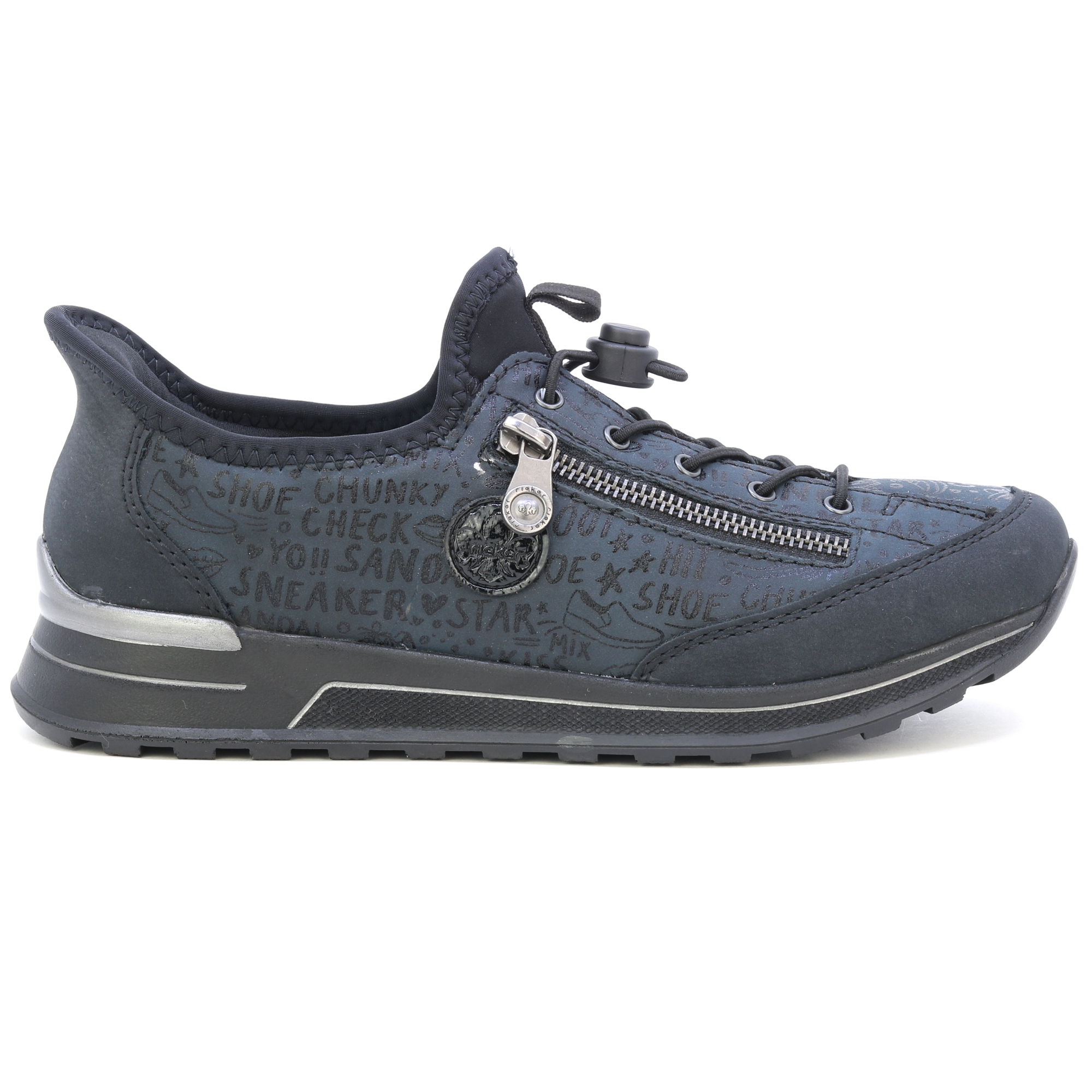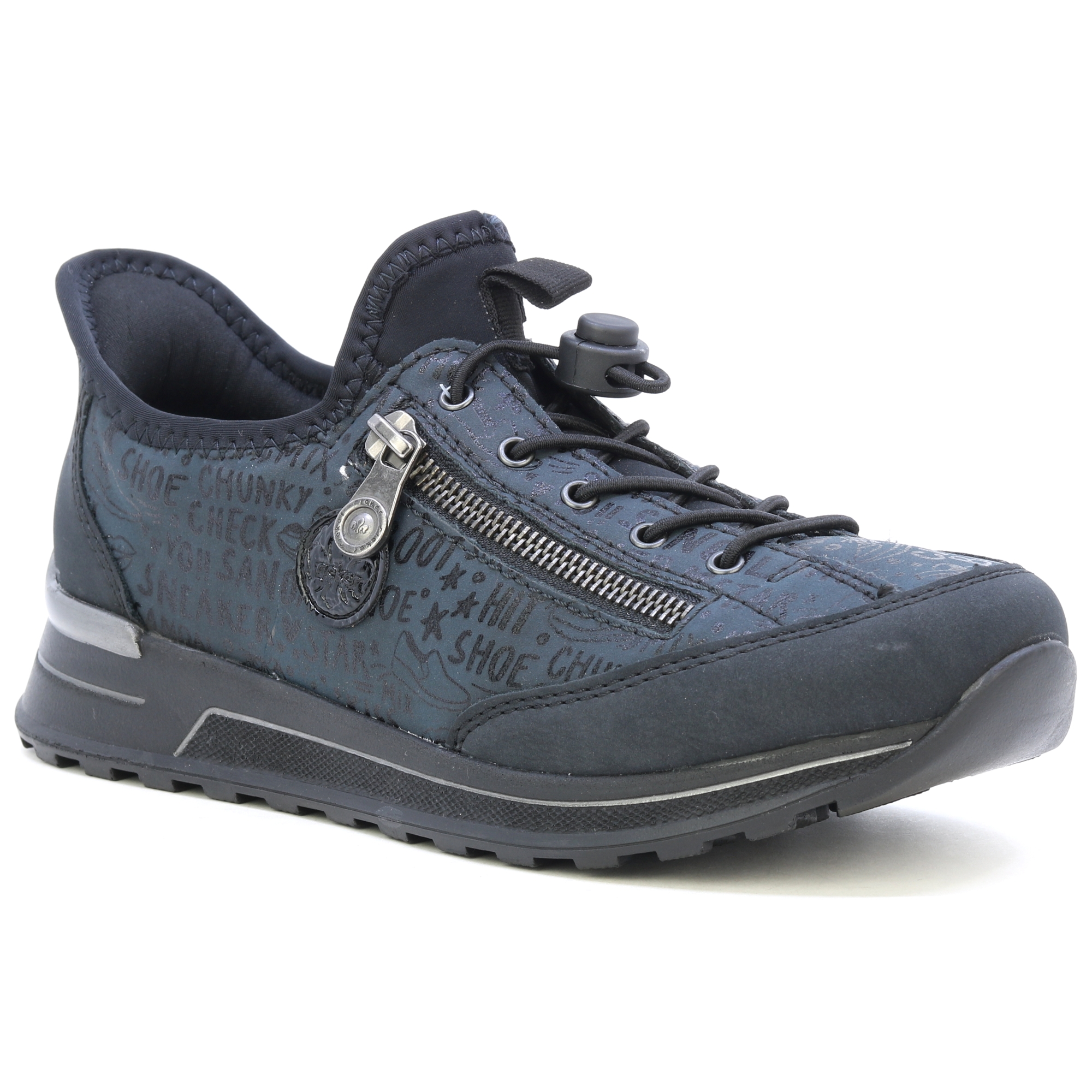 Tyto jedinečné tenisky RIEKER nabízí kombinaci tmavě modré barvy s jedinečným potiskem, ozdobným zipem a logem značky, tato kombinace přidává do obuvi nádech originality. Šněrování gumičkou a pružný horní okraj umožňují snadné nazutí. Maximální pohodlí a podporu během celého dne zajistí měkká vyjímatelná stélka a flexibilní podešev. Tyto tenisky jsou nejen stylové, ale také praktické pro každodenní nošení. Technologie: Antistress – díky čtyřem antistresovým vlastnostem – lehkosti, pružnosti, prostornosti a vynikající absorpci nárazů – vám boty RIEKER nabídnou komfortnější chůzi. RiekerSoft – unikátní stélka, která změkčuje došlap a přizpůsobí se tvaru Vašeho chodidla. Extraweit – obuv s tímto označením má stélku boty určenou pro široké chodidlo. Tato bota je vybavena vyjímatelnou stélkou.