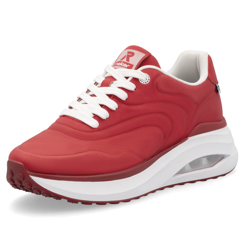 Objevte sportovní eleganci v červených teniskách RIEKER, které propojují moderní design a komfort, na jaký se můžete spolehnout po celý den. Stylový svršek s jemným perforovaným vzorem a elegantními liniemi dodává botám jedinečný vzhled, zatímco robustní podešev se zabudovanou vzduchovou částí zajišťuje účinné odpružení při každém kroku. Díky šněrování se obuv snadno přizpůsobí tvaru vaší nohy a poskytne jistou oporu i při delší chůzi. Vyjímatelná měkká stélka s technologií Rieker Soft se postará o celodenní pohodlí a prodyšnost. Antistresová konstrukce dělá tyto tenisky mimořádně lehkými, flexibilními a tlumícími. Navíc jsou vyrobeny bez použití živočišných materiálů, což je ideální volba pro ty, kdo preferují udržitelný životní styl. Model RIEKER Sport je perfektní volbou pro všechny, kteří hledají kombinaci pohodlí, sportovního stylu a odpovědného přístupu k módě.