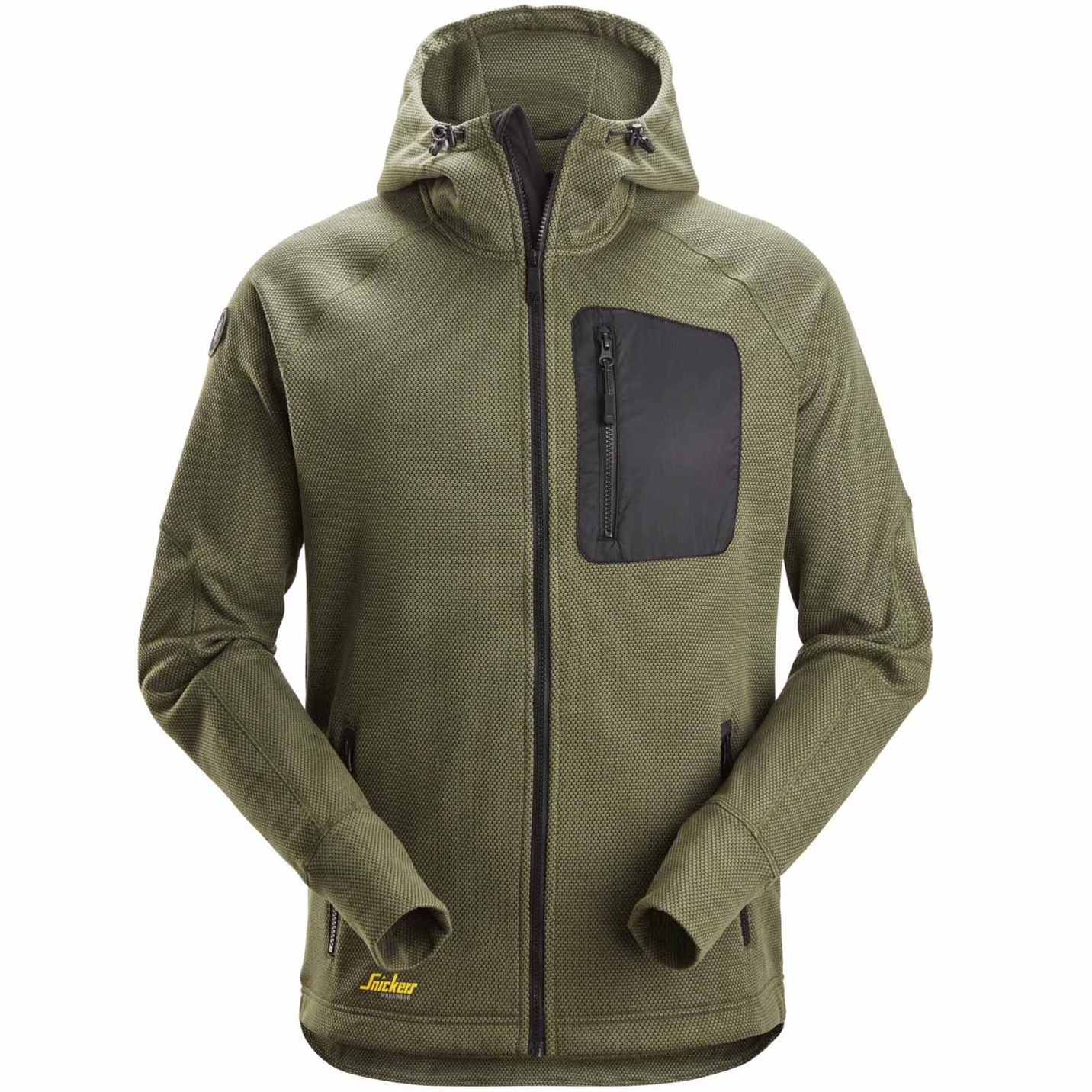• detail SNICKERS FlexiWork Mesh pánská olivová mikina/bunda