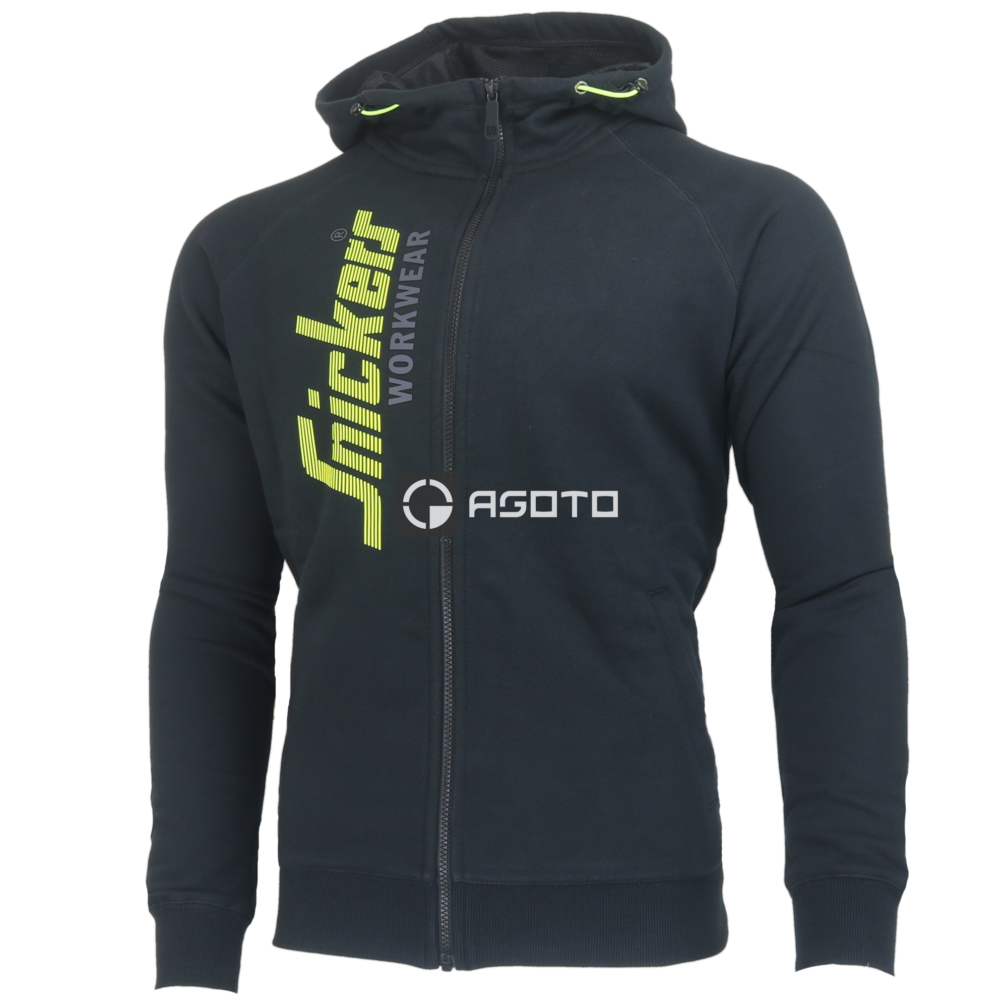 Robustně provedená mikina/bunda s kapucí a se zapínáním na zip. Ke komfortu nošení významně přispívá tkanina s vnitřním česáním, která je příjemná na dotyk a současně dobře zadržuje vzduch a tím lépe izoluje v chladu. Raglánové rukávy umožňují lepší pohyblivost paží a jsou zakončené elastickými manžetami, které zamezují průniku chladného vzduchu, a také nečistot při vzpažení. Nastavitelná kapuce je podšitá síťovinou, stejně jako dvě přední prostorné kapsy. Bytelný zip má pogumovaného jezdce pro lepší manipulaci. Na hrudi je 3D logo Snickers Workwear v neonově žluté barvě.