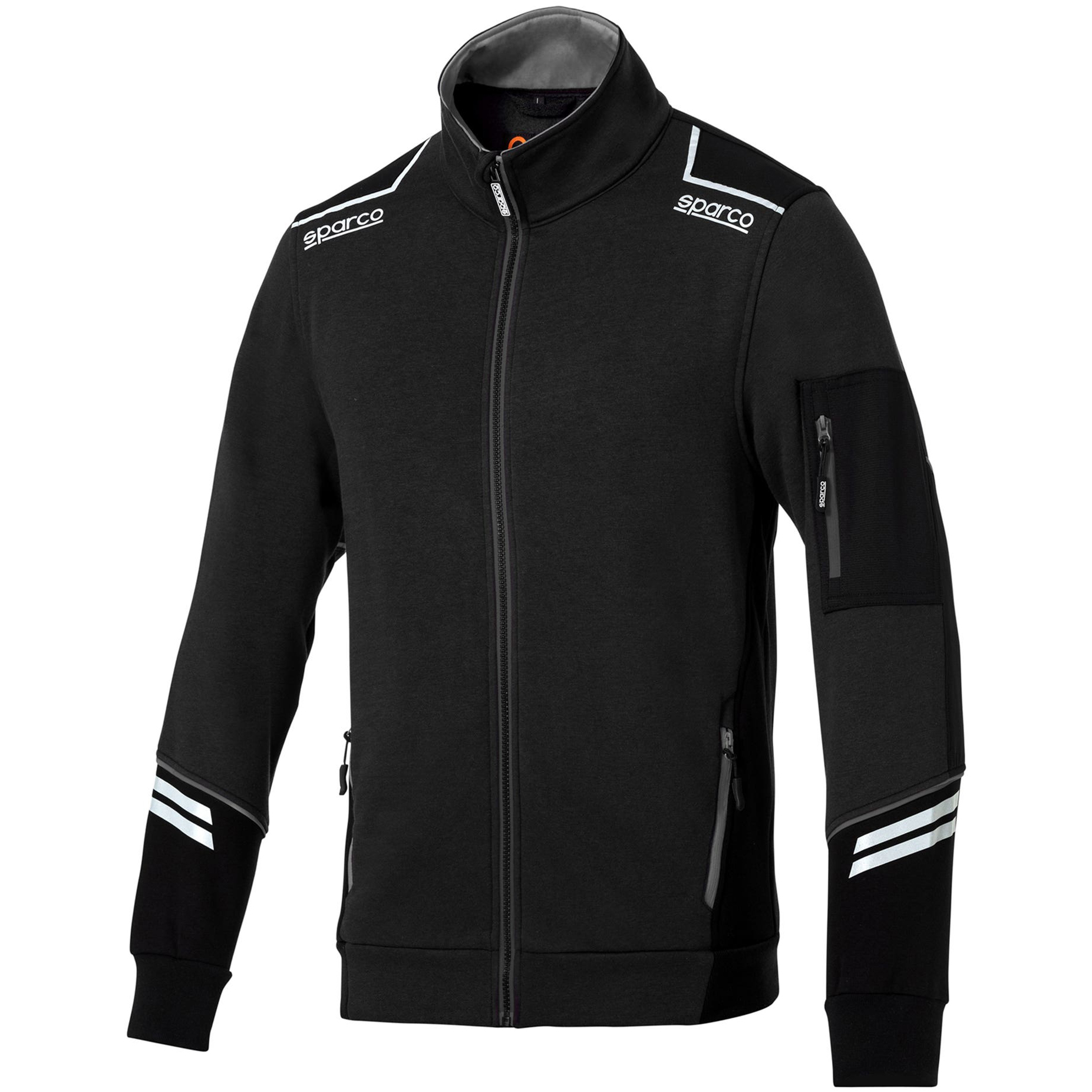 80% bavlna - 20% polyester / 280gsm Sparco reflexní loga, vyztužené rukávy s vložkami proti oděru a vysoce viditelnými reflexními pruhy. Vyztužné vložky na ramenou, ultra posuvný boční zip na náprsní kapse.