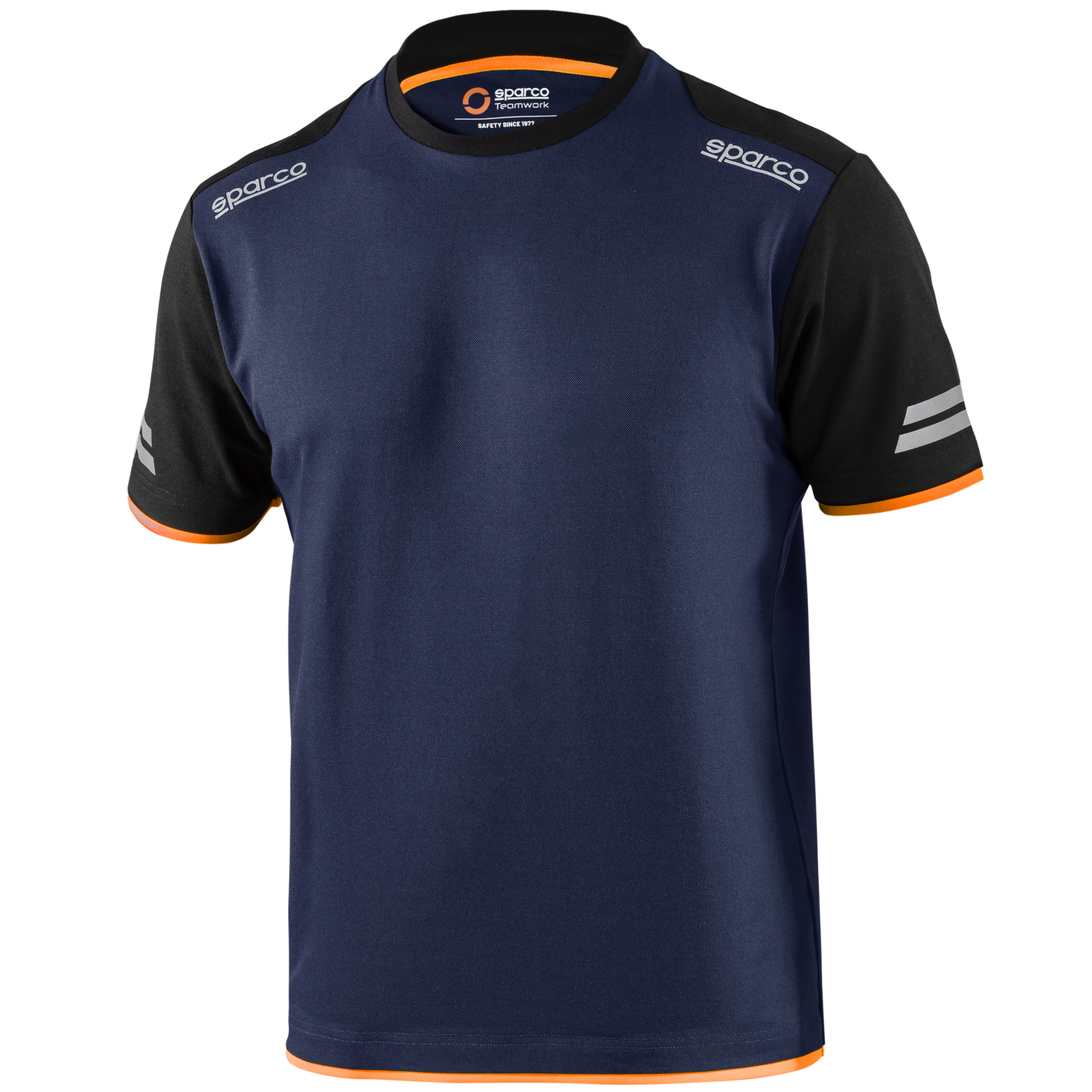 50 % bavlna - 50 % polyester s efektem pique / 170 g/m2 reflexní loga Sparco, vysoce viditelné pruhy na rukávech, zesílená ramena, kontrastní vložky.